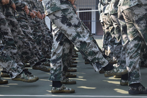 能源院今年的训练场地在南校区操场。附近被大树环绕,为各位新生提供了天然的遮阴休息处。尽管每天有几个小时的暴晒,但同学们依旧热情不减,坚持参加训练。训练场上洒满汗水,阳光照耀在橄榄绿的迷彩军装上,让同学们显得活力十足。