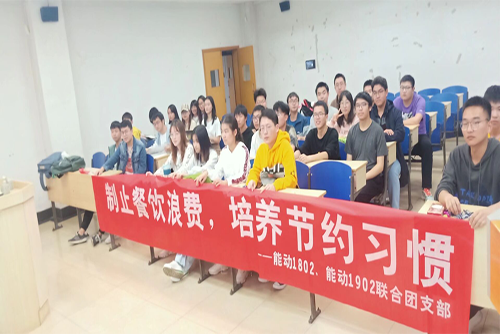 11月18日下午四点,能动1902班于科教北楼208与能动1802班联合开展制止餐饮浪费,培养节约习惯主题班级活动,马荣杰同学主持这次活动。