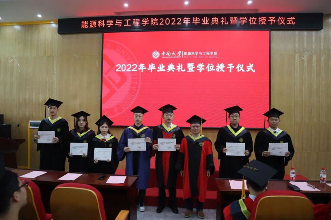 优秀毕业生表彰决定,并由廖胜明书记、孙志强院长为获奖代表颁奖;党委书记廖胜明发表了慷慨激昂的讲话,本科毕业生代表左露洁,硕士生代表姚尧也在此表达出了心底的感激与不舍。在学位授予环节,各位教授先后为毕业生拨穗正冠,颁发学位证书,进行合影留念。