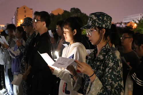 晚上七点,同学们吃过晚饭后,在辅导员和教官们及学长学姐们的组织下,在必威