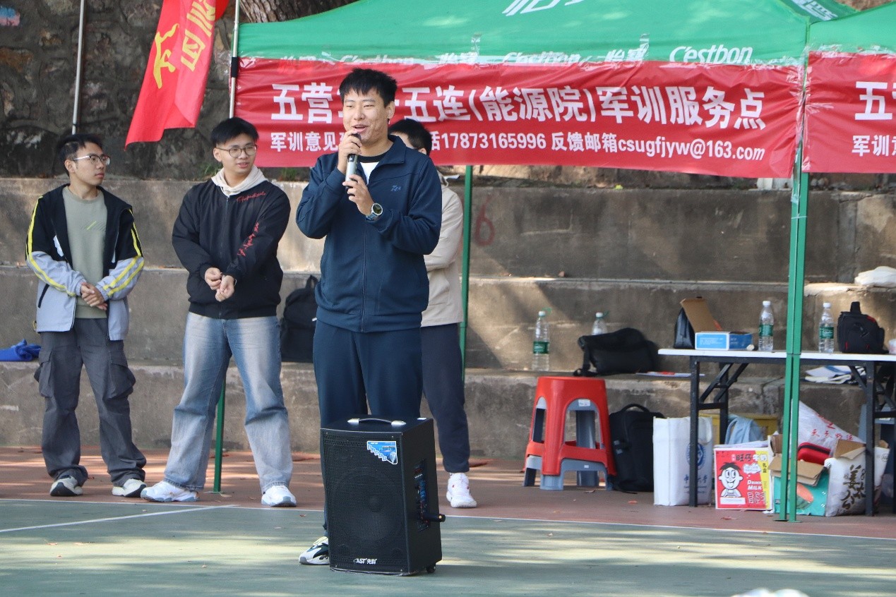 接着,龚书记就军训的意义与价值展开,强调军训是大学第一课,对于培养新生的意志品质和生活习惯有着重要意义,同学们务必认真对待每日训练,提高思想觉悟,在汗水中锻炼青春力量,展现能源风采,以昂扬的姿态面对困难和考验,并在未来的学习生活中继续发扬吃苦耐劳、知难而上的精神。同时,龚书记也挂念着同学们及教官的身体健康状况,叮嘱同学们在渐冷的天气下注意保暖,若身体抱恙一定要及时打报告出列。