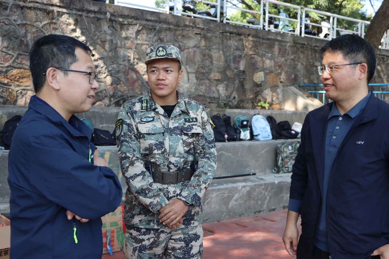 开展的军训慰问工作成果开展。院党委书记龚涛、党委副书记王洪才慰问2025级军训新生及带训教官。2025级辅导员关淼主持开场。