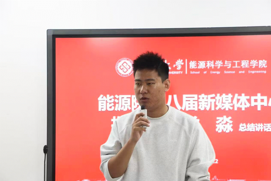 活动伊始,由能源院第七届新媒体中心执行总监陈昆进行工作汇报,他首先总结上一年新媒体中心的工作,并结合其个人感悟为在座所有同学给予了具体可靠的建议。他分享了学习新媒体技能的方法,并着重强调了同学之间沟通交流的重要性。