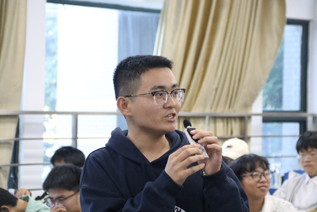 随后,优秀学生代表唐成亮学长分享了他的学习经验和竞赛心得。唐学长结合自身经历,详细介绍了如何科学规划时间、平衡学业与竞赛的关系,以及高效备赛的实用技巧。他特别提到,在备赛过程中要注重团队协作,善于利用必威