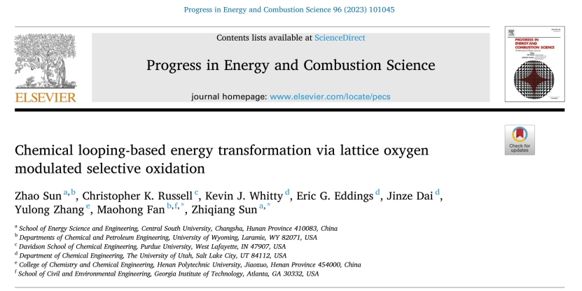 孙志强教授团队与国内外多个团队合作,受邀在国际顶级综述期刊Progress in Energy and Combustion Science(IF: 35.339)上发表了题为“Chemical looping-based energy transformation via lattice oxygen modulated selective oxidation”的长篇综述。必威