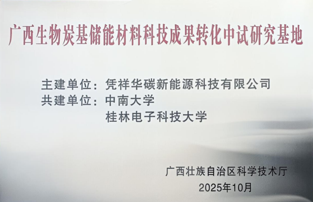联合凭祥华碳新能源科技有限公司、桂林电子科技大学共建的“广西生物炭基储能材科技成果转化中试研究基地”成功获批。