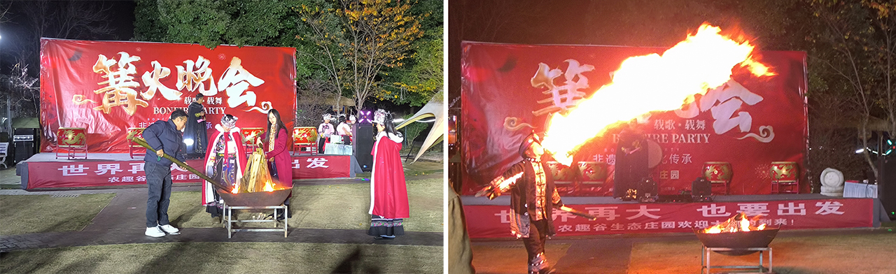 下午的茶话会上,新进教师们逐一作自我介绍,大家畅谈工作与生活,增进相互的了解,其乐融融。晚餐后举行了篝火晚会,大家点燃火把,围坐一圈,观看民俗特色歌舞与非遗绝技表演,参与“板鞋竞速”等传统趣味游戏,现场气氛热烈欢快。伴随着灿烂的烟火秀,活动在一片欢声笑语中圆满结束。