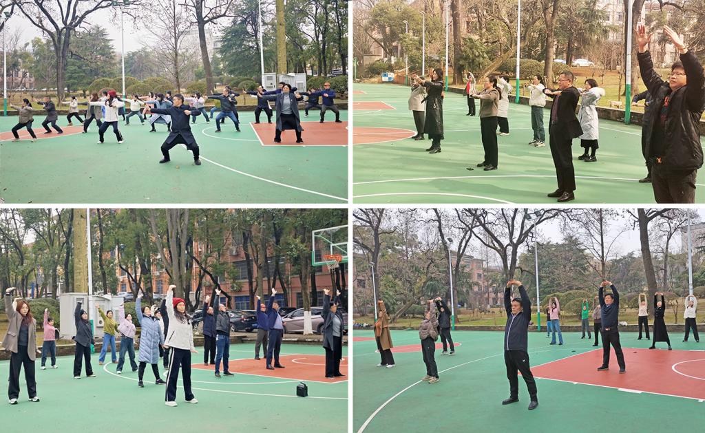 等部门工会在健园篮球场开展了八段锦工间操活动。
